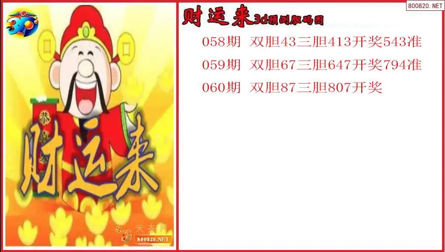财运来2026060期3d预测胆码图(原创)