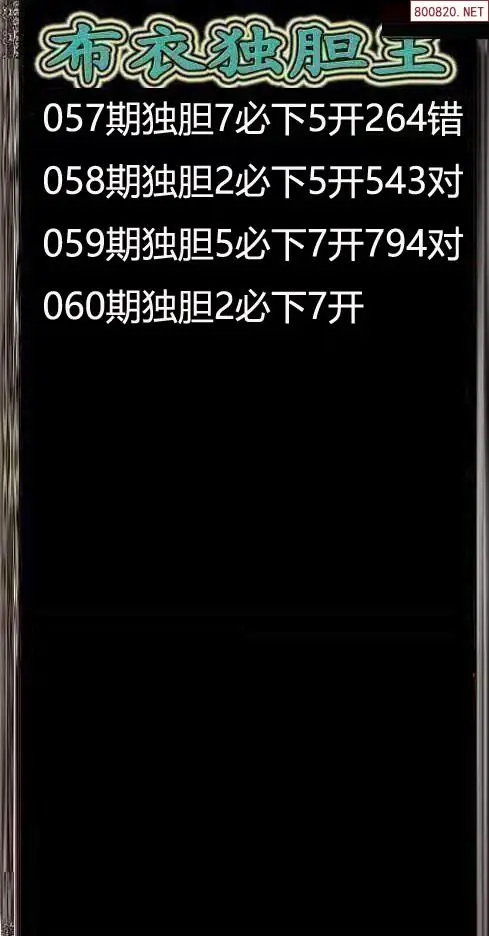 26060期布衣独胆王双胆图谜