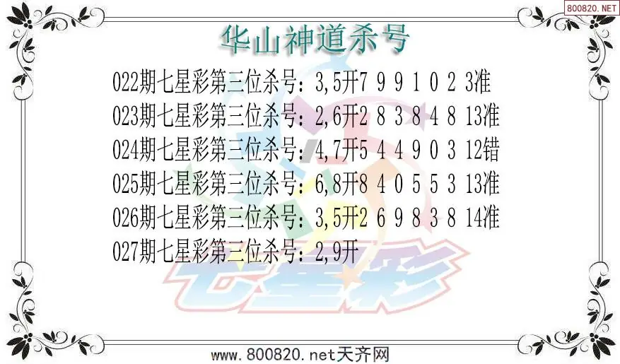 华山神道26年027期七星彩杀号图谜