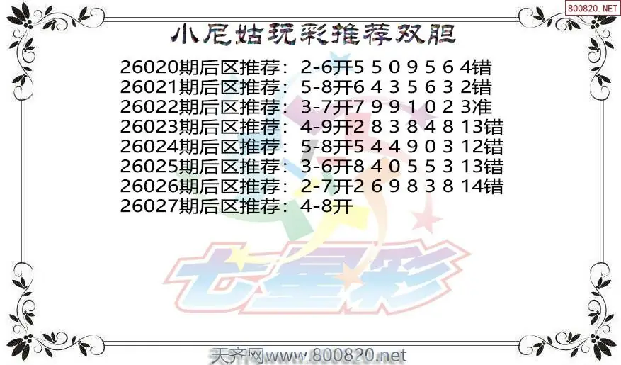 毒霸26年027期七星彩杀号图谜