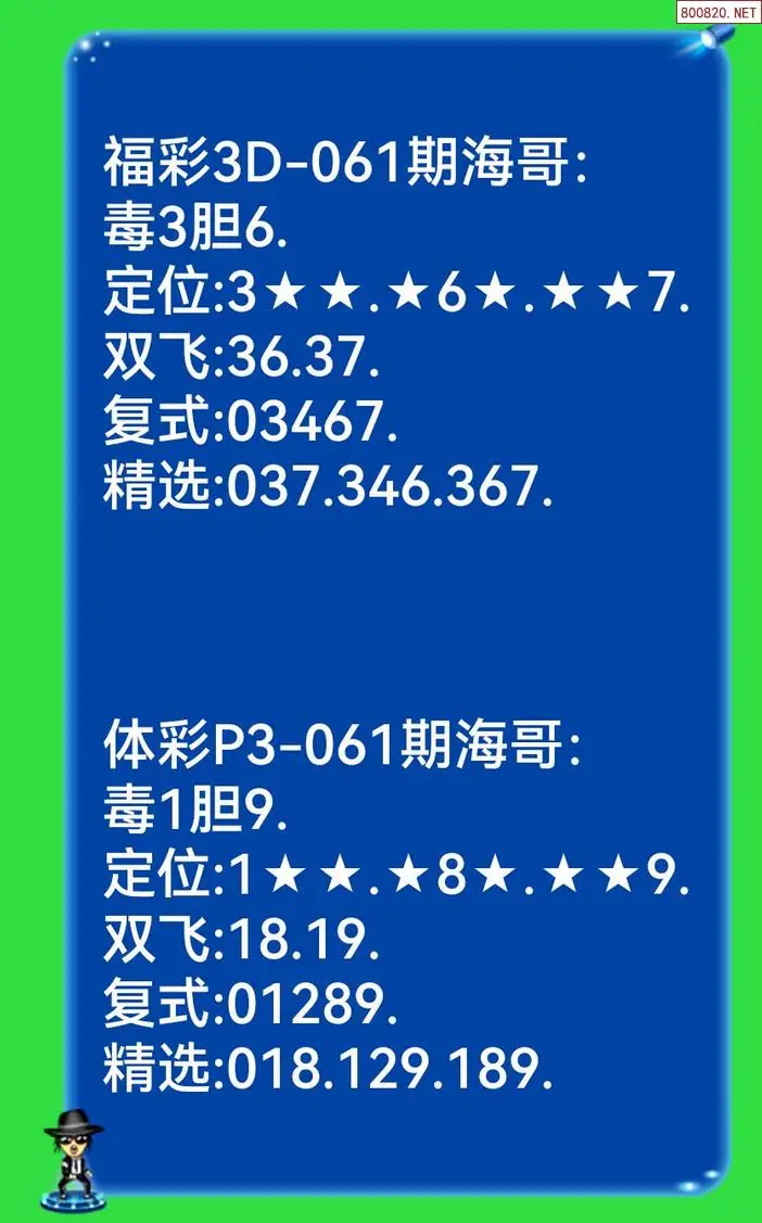 2 [海哥]第061期3d本期双胆