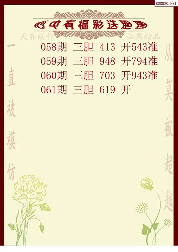 2026年061期心中有福福彩送胆图谜(天齐网原创)