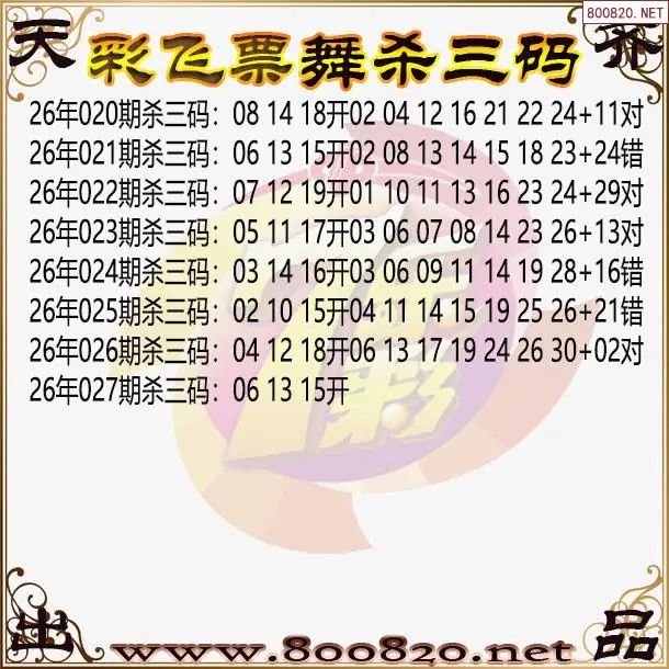 彩飞票舞26年027期七乐彩杀号图谜