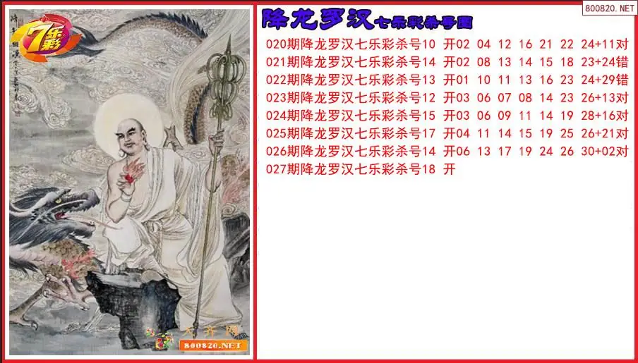 七乐彩2026027期降龙罗汉杀号图