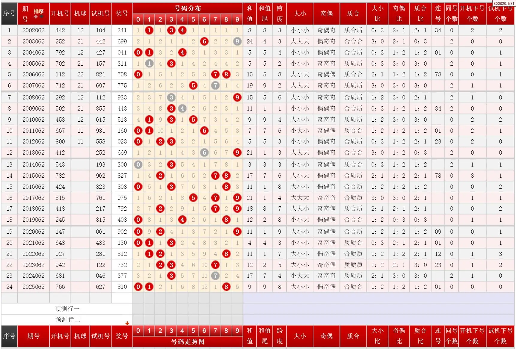 062期福彩3D历史同期对比图表+近期走势图分析