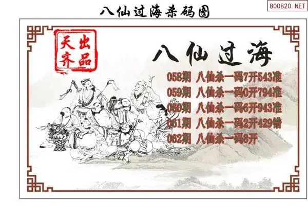 26062期八仙过海福彩3d杀码图谜-天齐原创