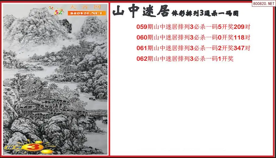 2026062期山中迷居体彩排列3通杀一码图(原创)