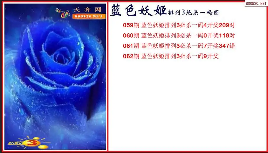 2026年蓝色妖姬062期排列3绝杀一码图(原创)