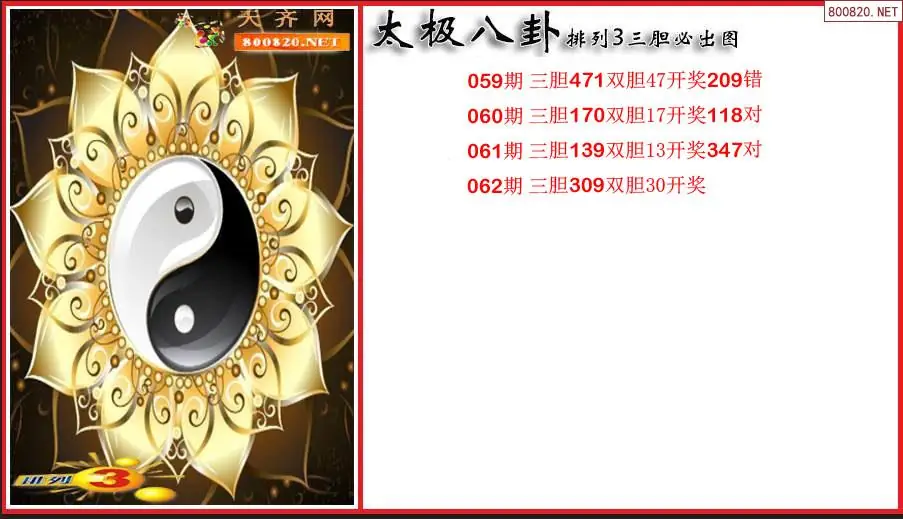 太极八卦2026062期排列3三胆必出图(原创)