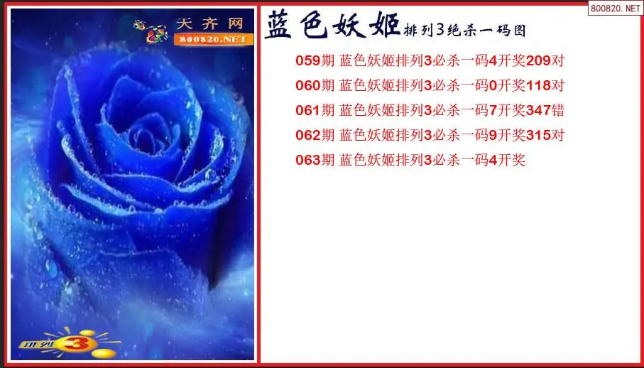 2026年蓝色妖姬063期排列3绝杀一码图(原创)