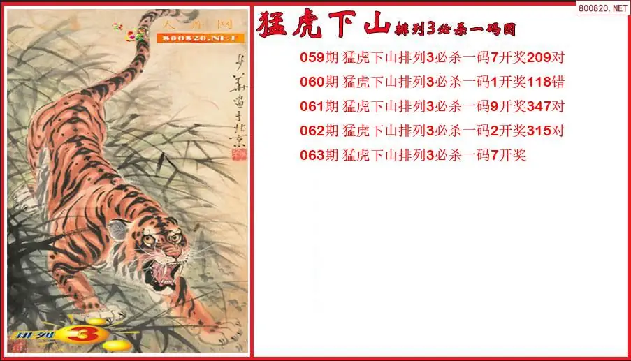 猛虎下山2026063期排列3必杀一码图(原创)