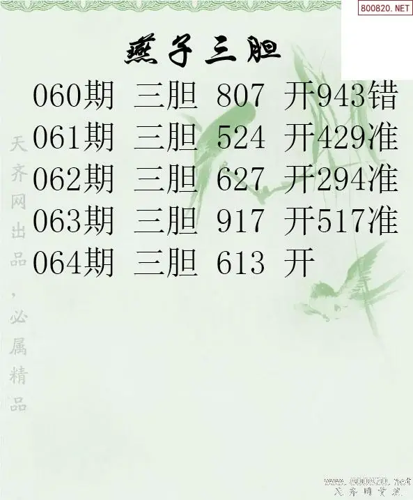 26064期燕子三胆3d胆码图谜-天齐原创