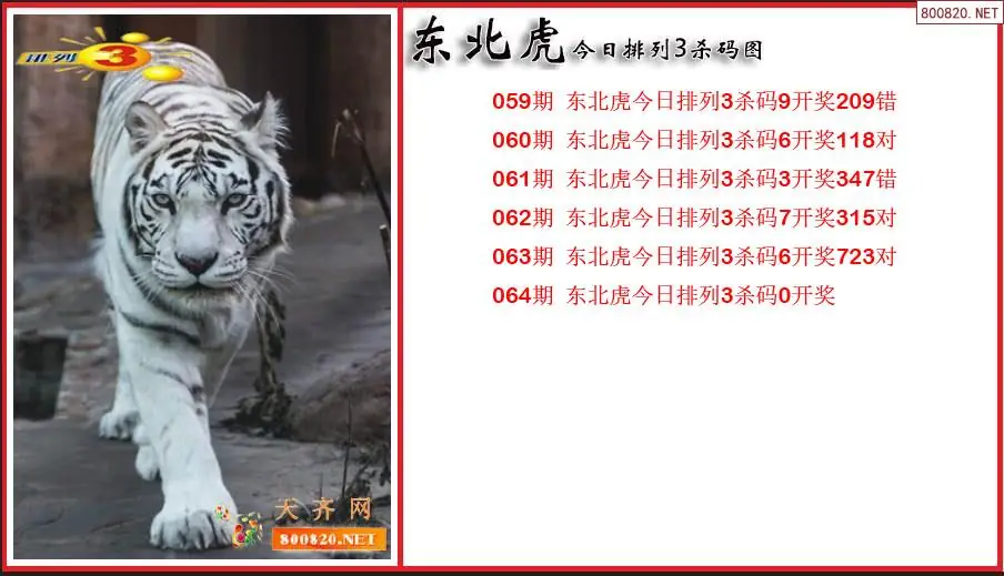 2026064期东北虎排列3通杀一码图(原创)