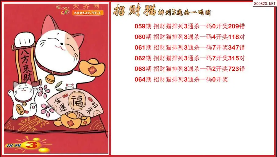 2026064期招财猫排列3通杀一码图(原创)