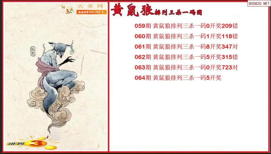 排列3第2026064期黄鼠狼杀一码图(原创)