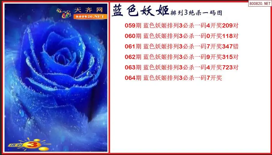 2026年蓝色妖姬064期排列3绝杀一码图(原创)