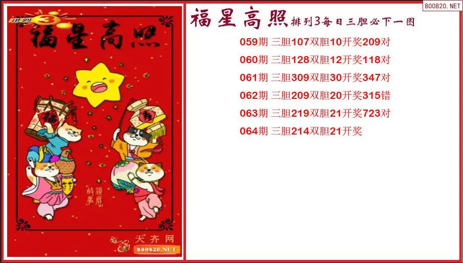 福星高照2026064期排列3每日三胆必下一图(原创)