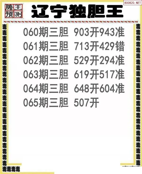 26065期辽宁独胆王三胆图谜