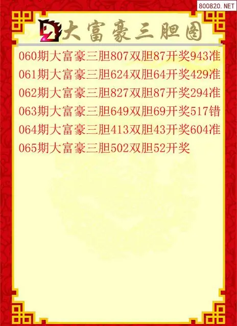 2026年福彩3d第065期大富豪三胆图谜(天齐网原创)