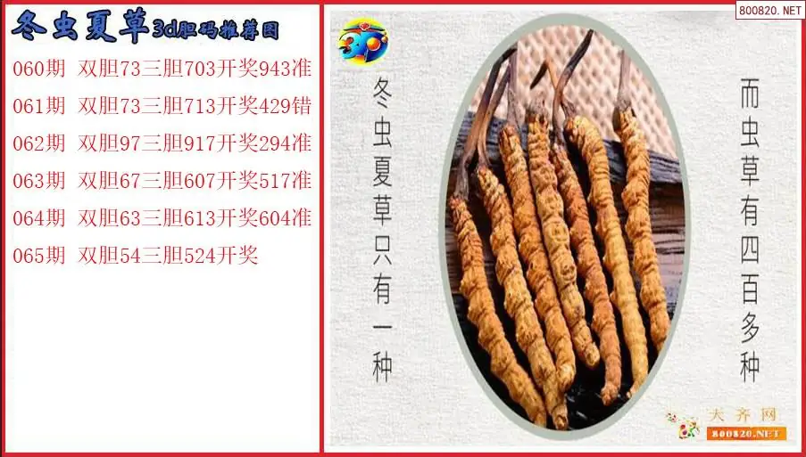 冬虫夏草2026065期3d胆码推荐图(原创)