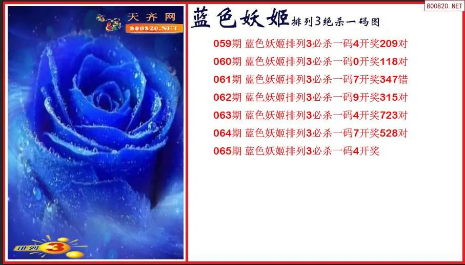 2026年蓝色妖姬065期排列3绝杀一码图(原创)