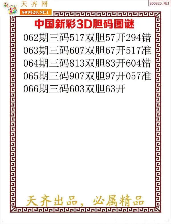 2026066期新彩福彩3d图谜-天齐原创发布