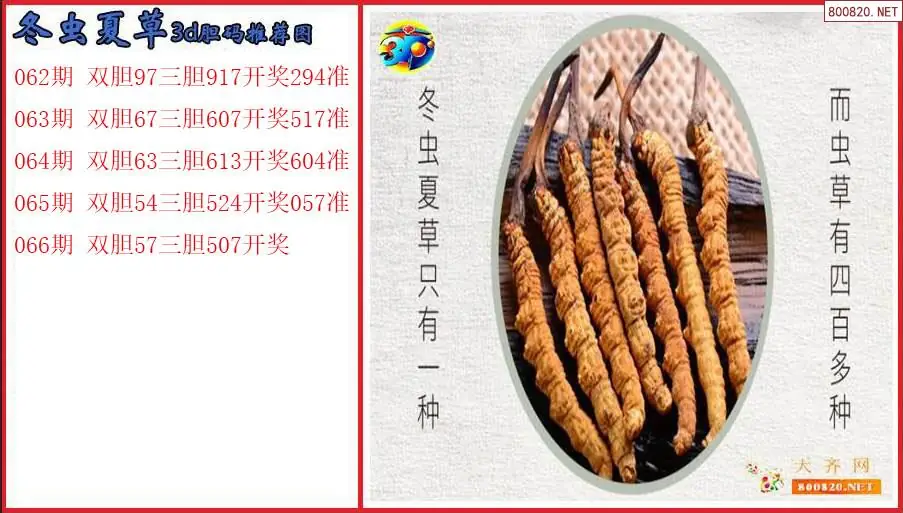 冬虫夏草2026066期3d胆码推荐图(原创)