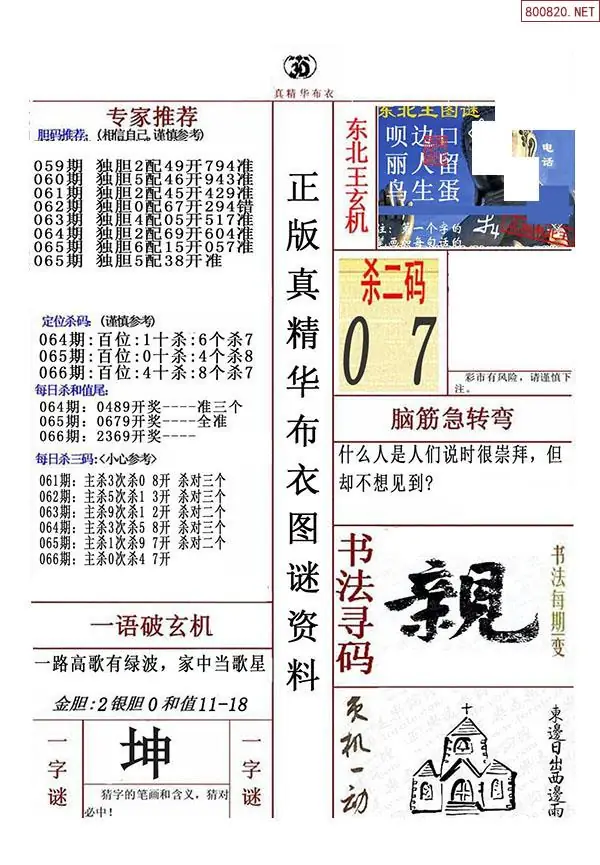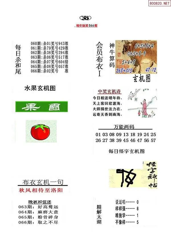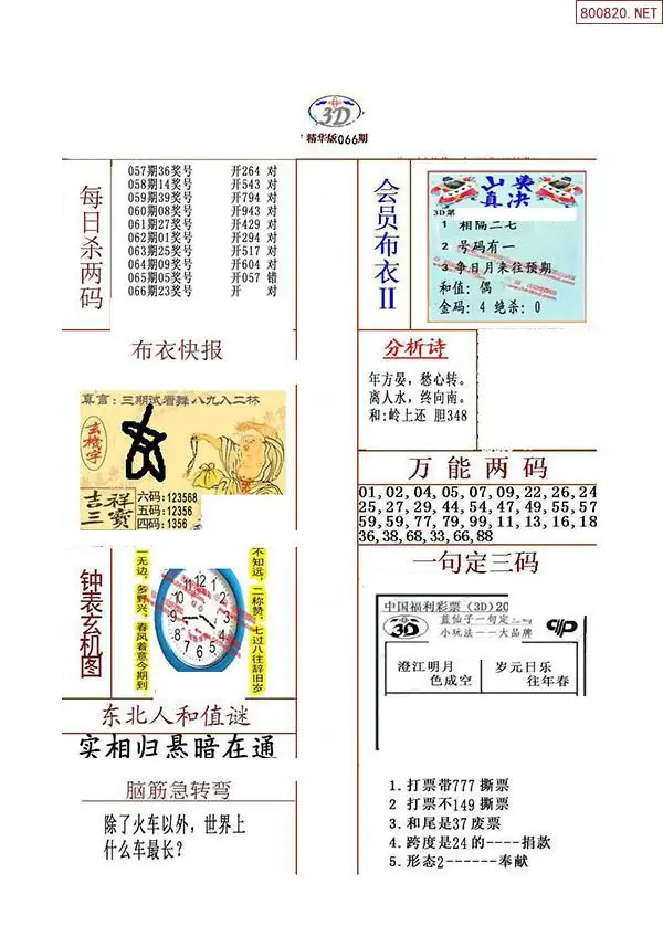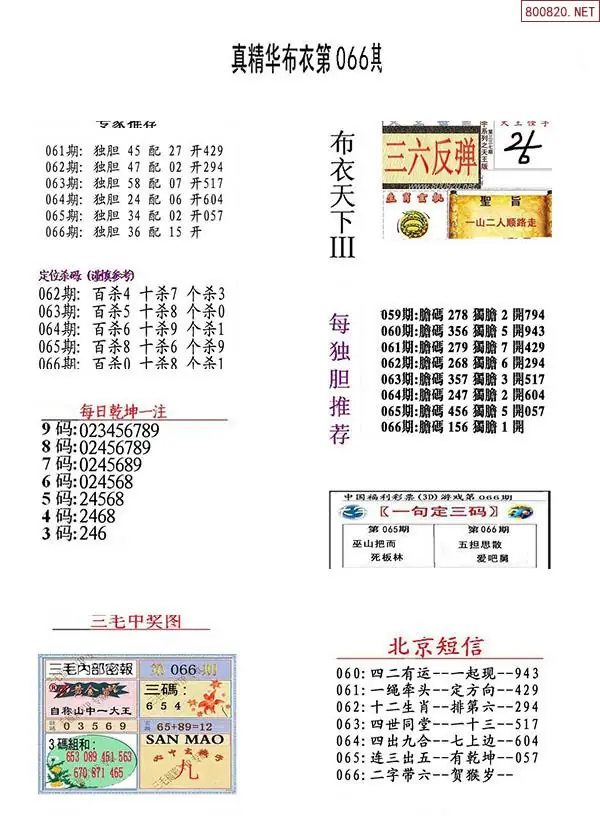 2026年066期精华布衣3D全图