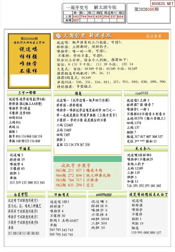 26年066期解太湖3d字图迷汇总彩报