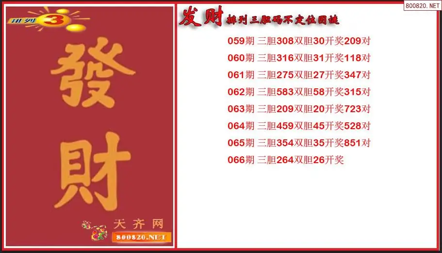 发财排列三2026066期胆码不定位图谜(原创)