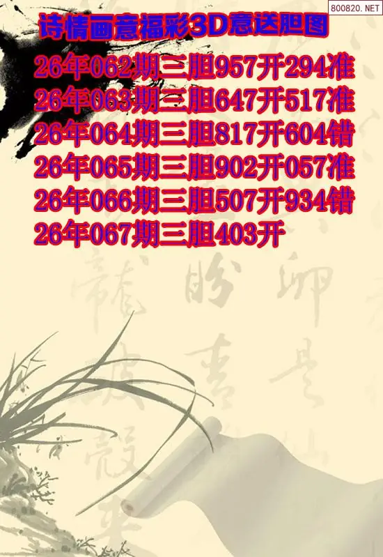 天齐原创3d图谜067期诗情画意三胆图