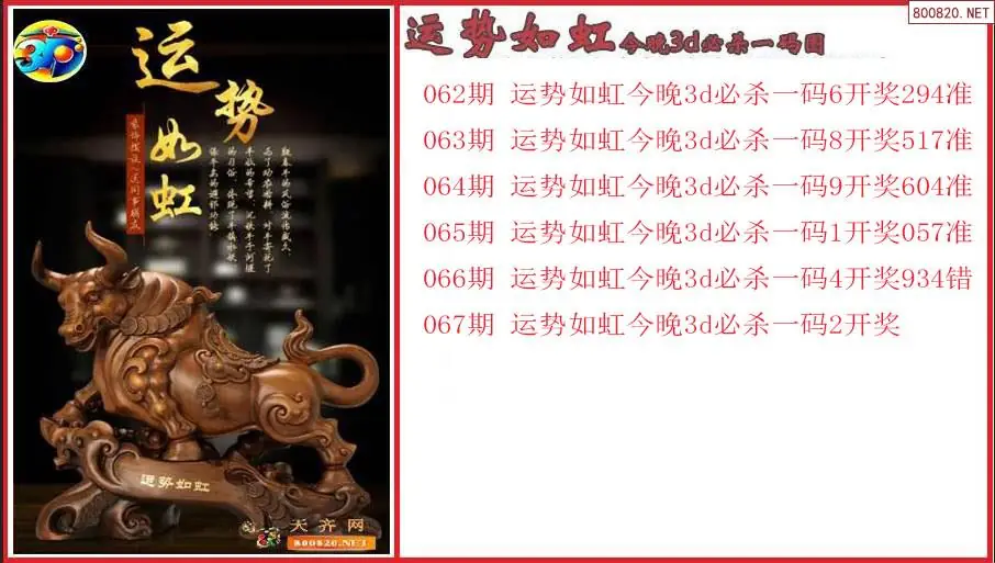 运势如虹2026067期今晚3d必杀一码图(原创)