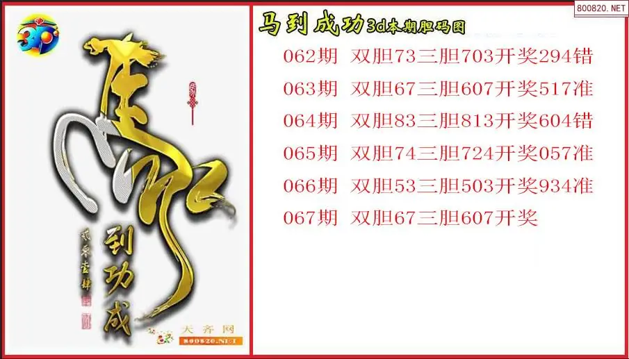 马到成功2026067期本期3d胆码图(原创)