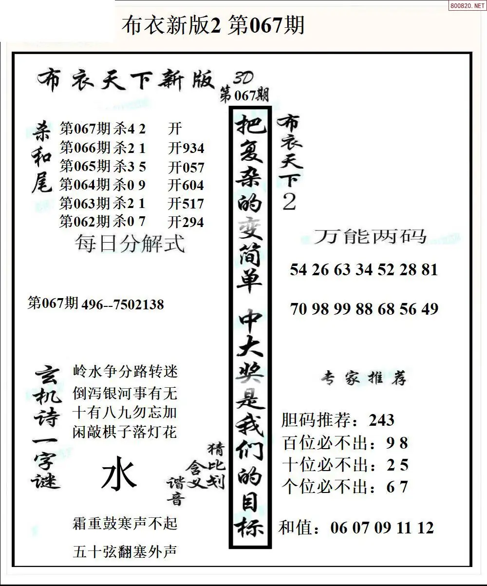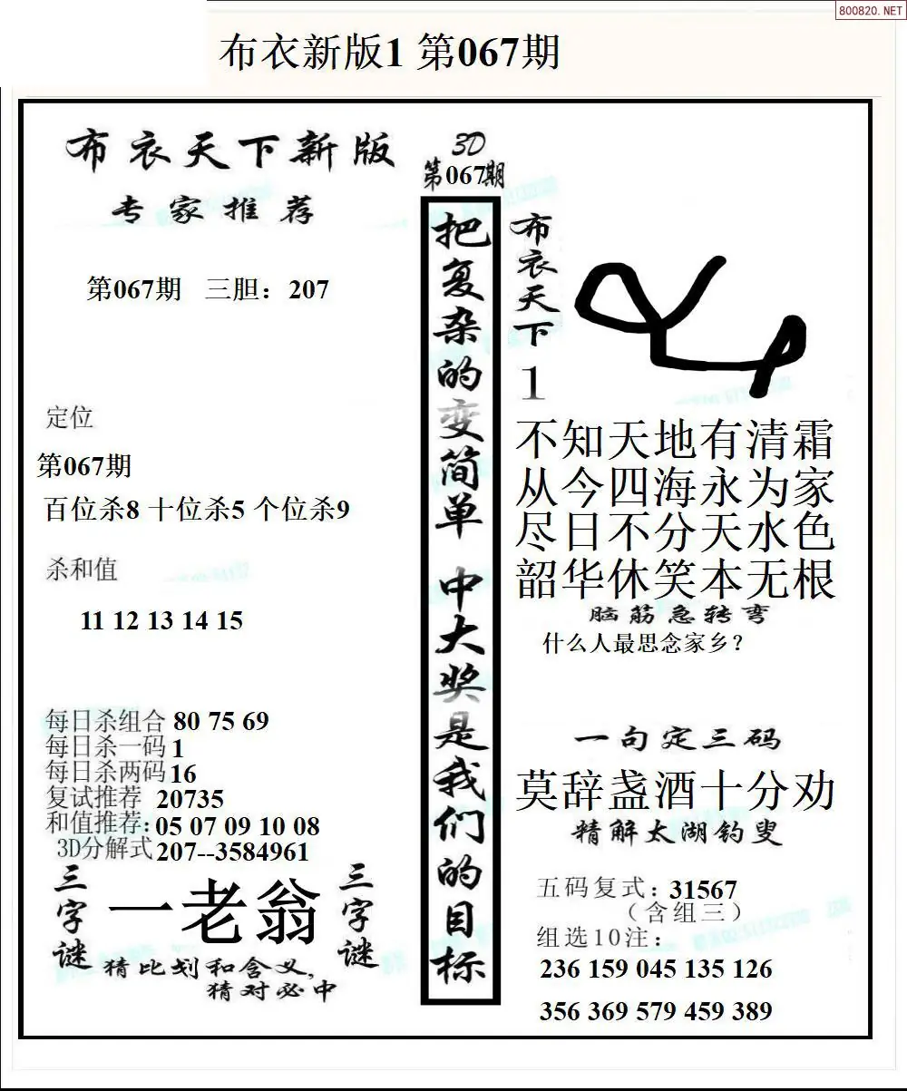 26067期新版3d布衣天下1234