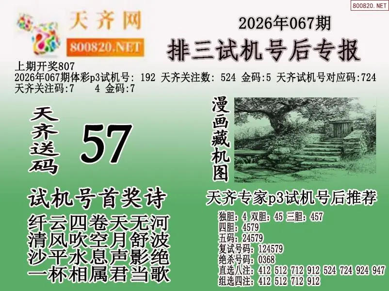 2026年067期体彩p3试机号后天齐网专报
