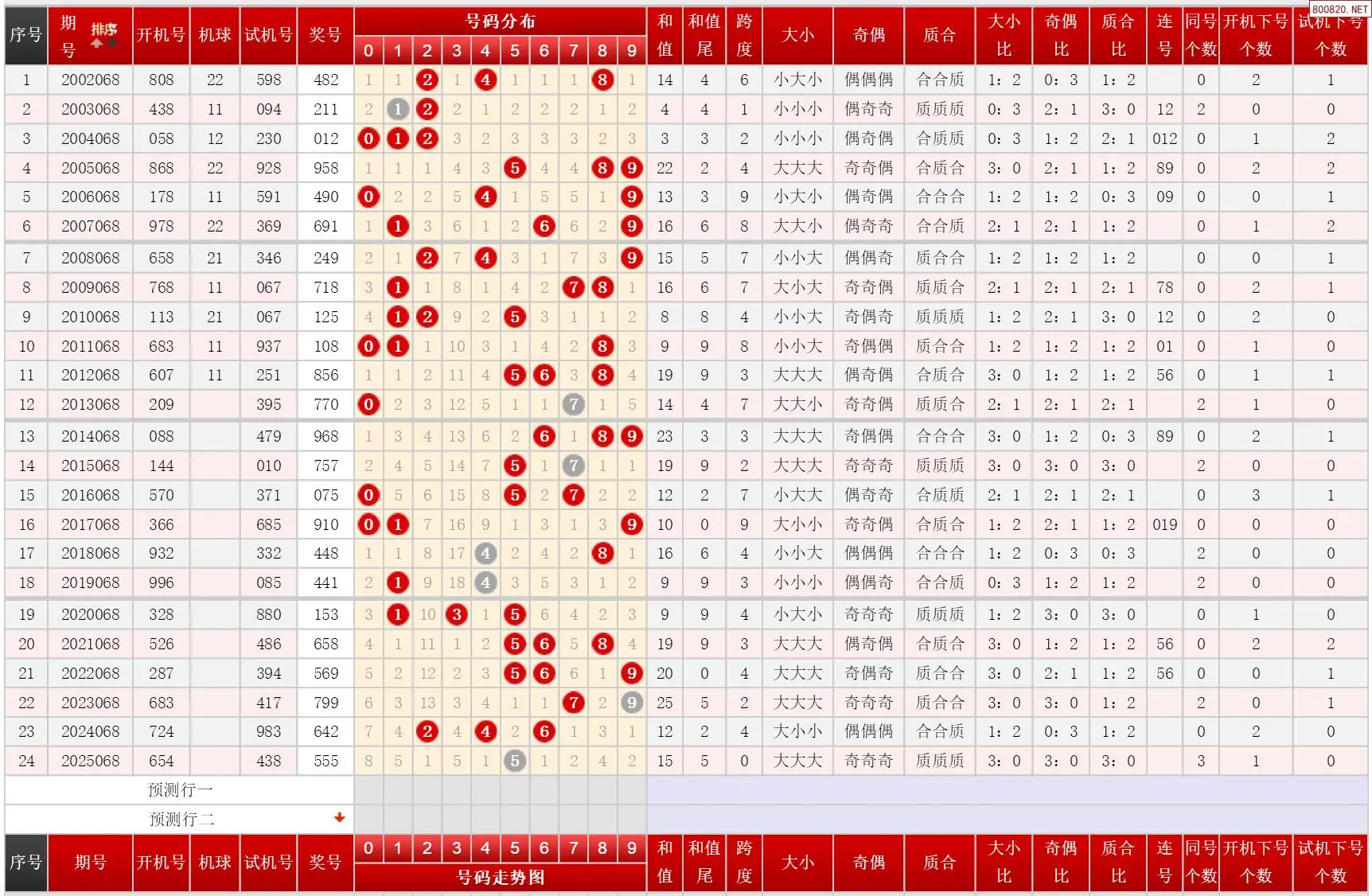 068期福彩3D历史同期对比图表+近期走势图分析