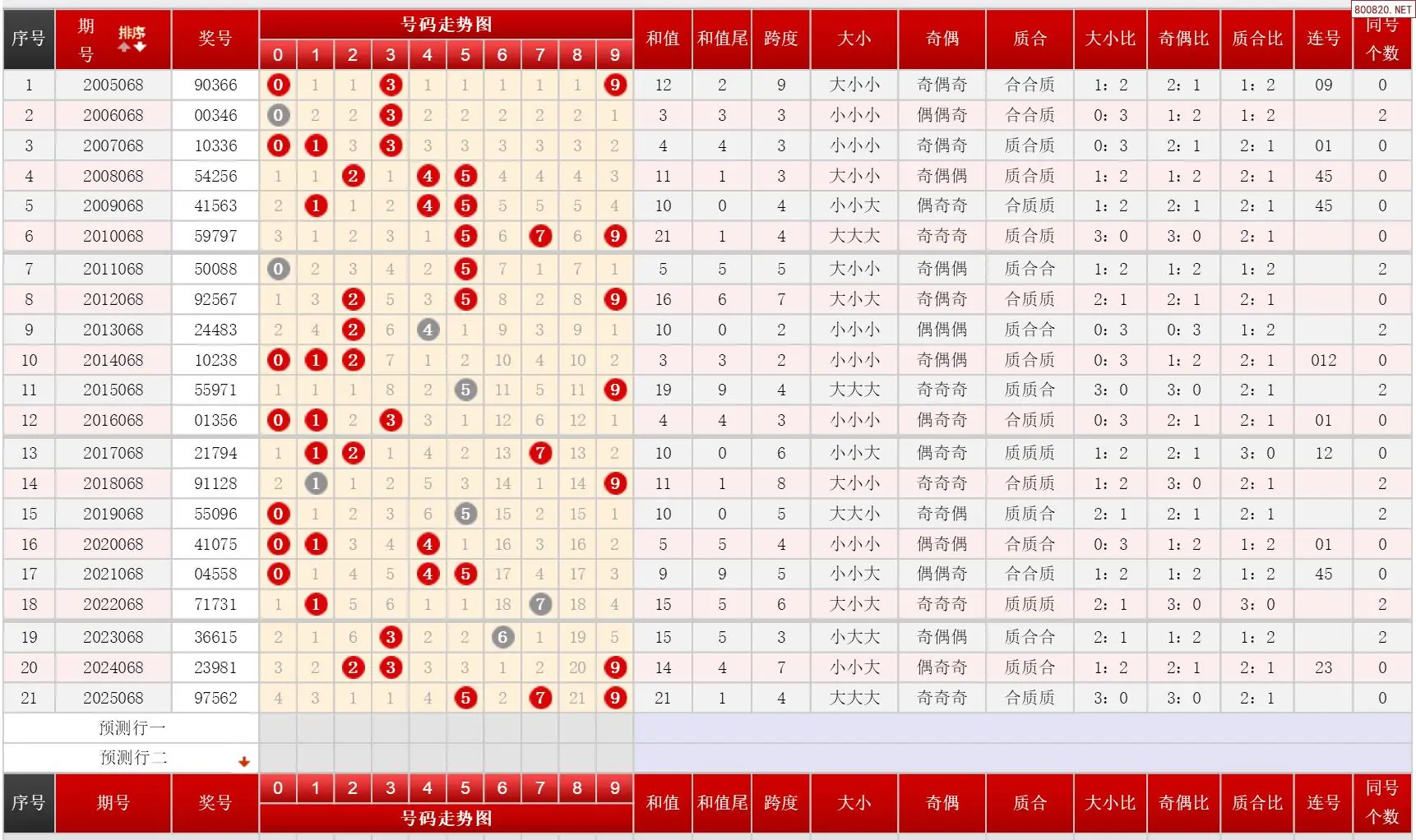 068期体彩P3历史同期对比图表+近期走势图分析