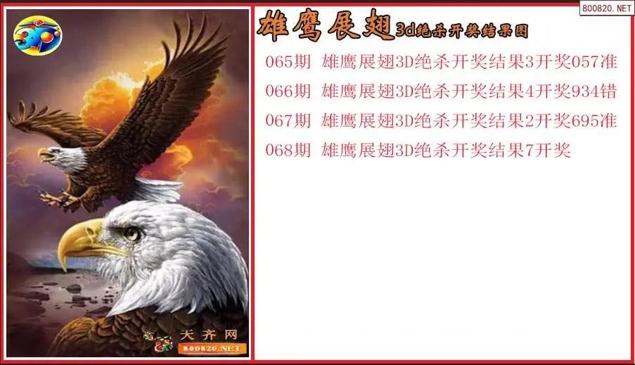 雄鹰展翅2026068期3d绝杀开奖结果图(原创)