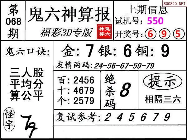鬼六图26068期鬼六神算报+鬼六胆码图迷