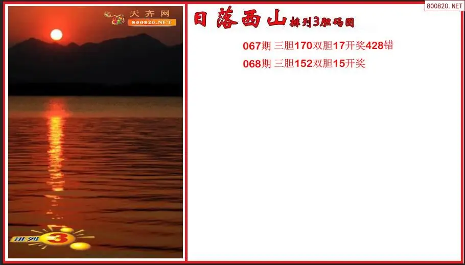 日落西山2026068期排列3胆码图谜(原创)