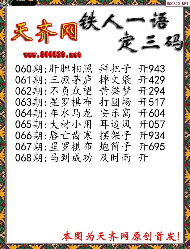 068期3D铁人一句定三码字图谜