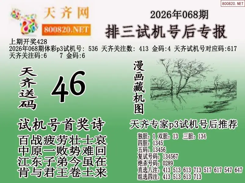 2026年068期体彩p3试机号后天齐网专报