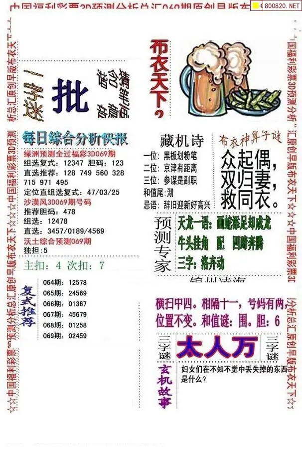 布衣图069期布衣定位杀+布衣神算图迷