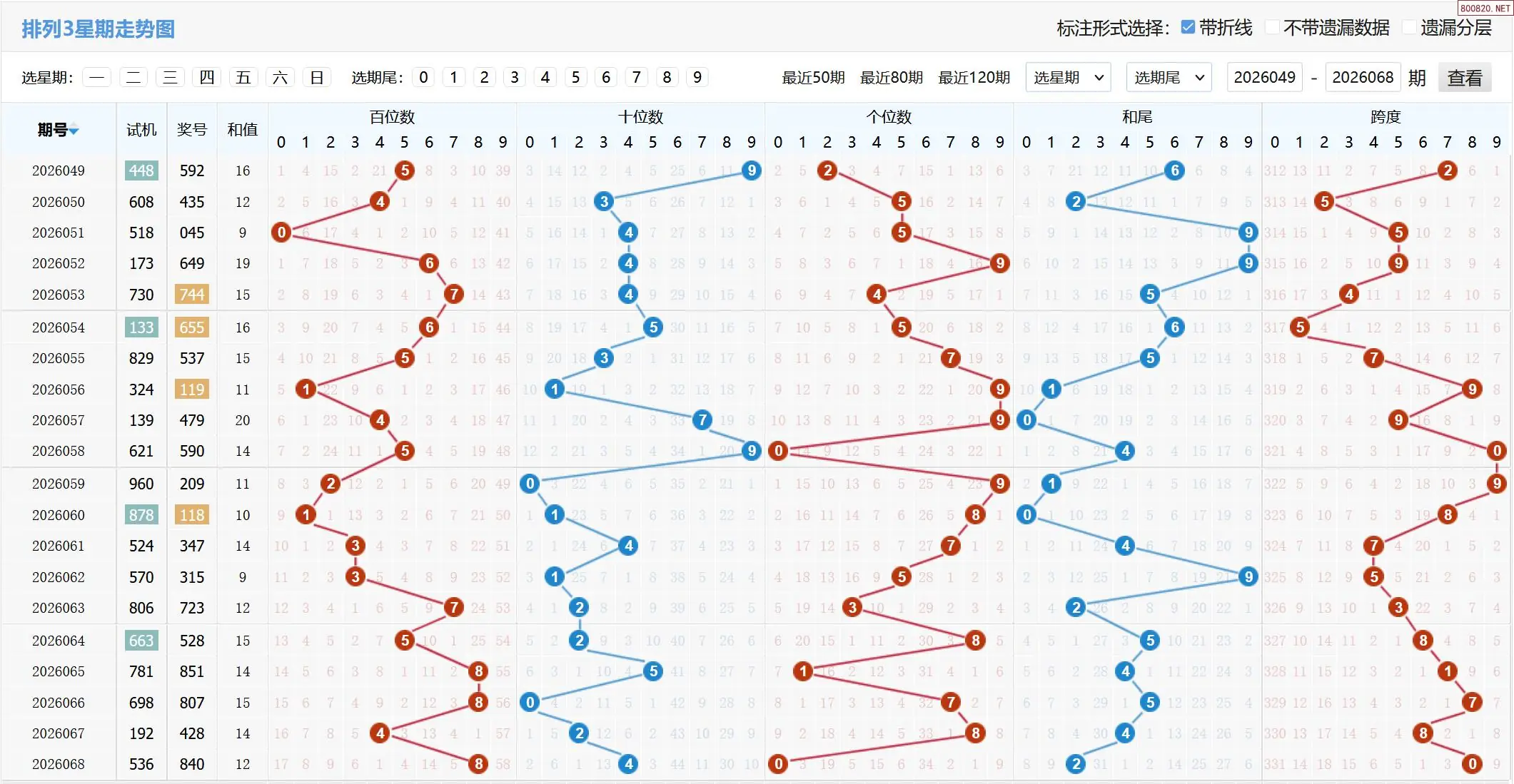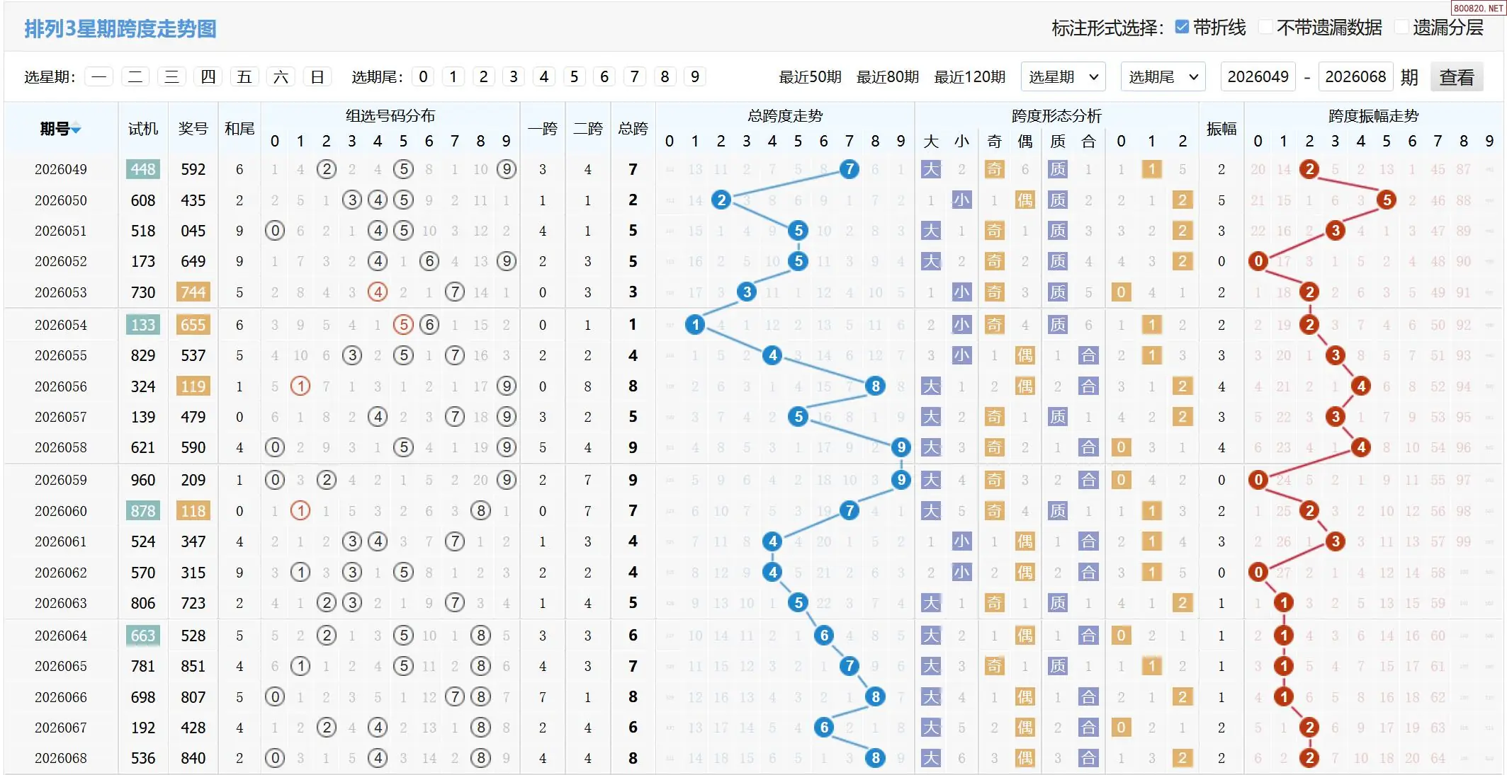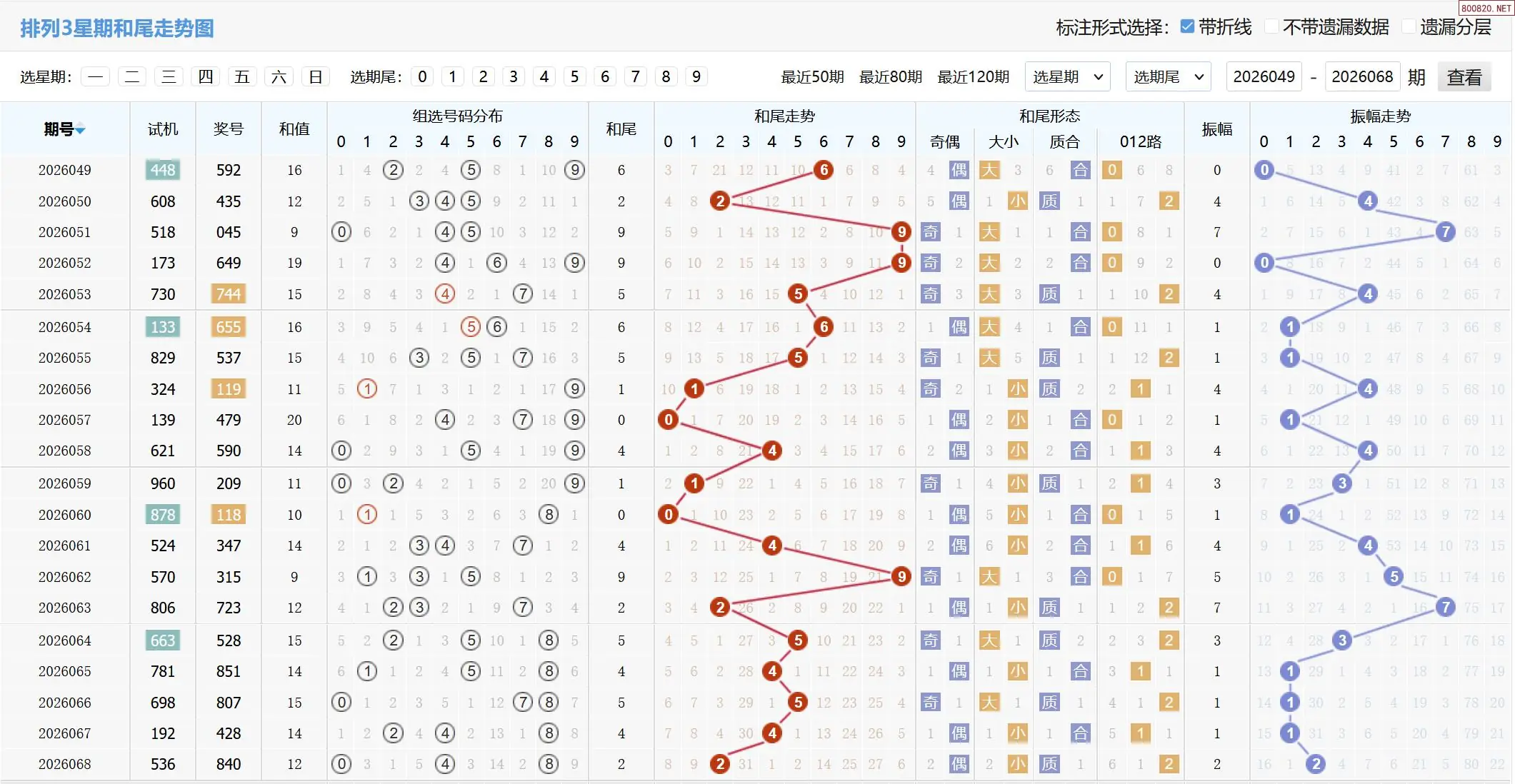 2026069期体彩P3基本走势图如下: