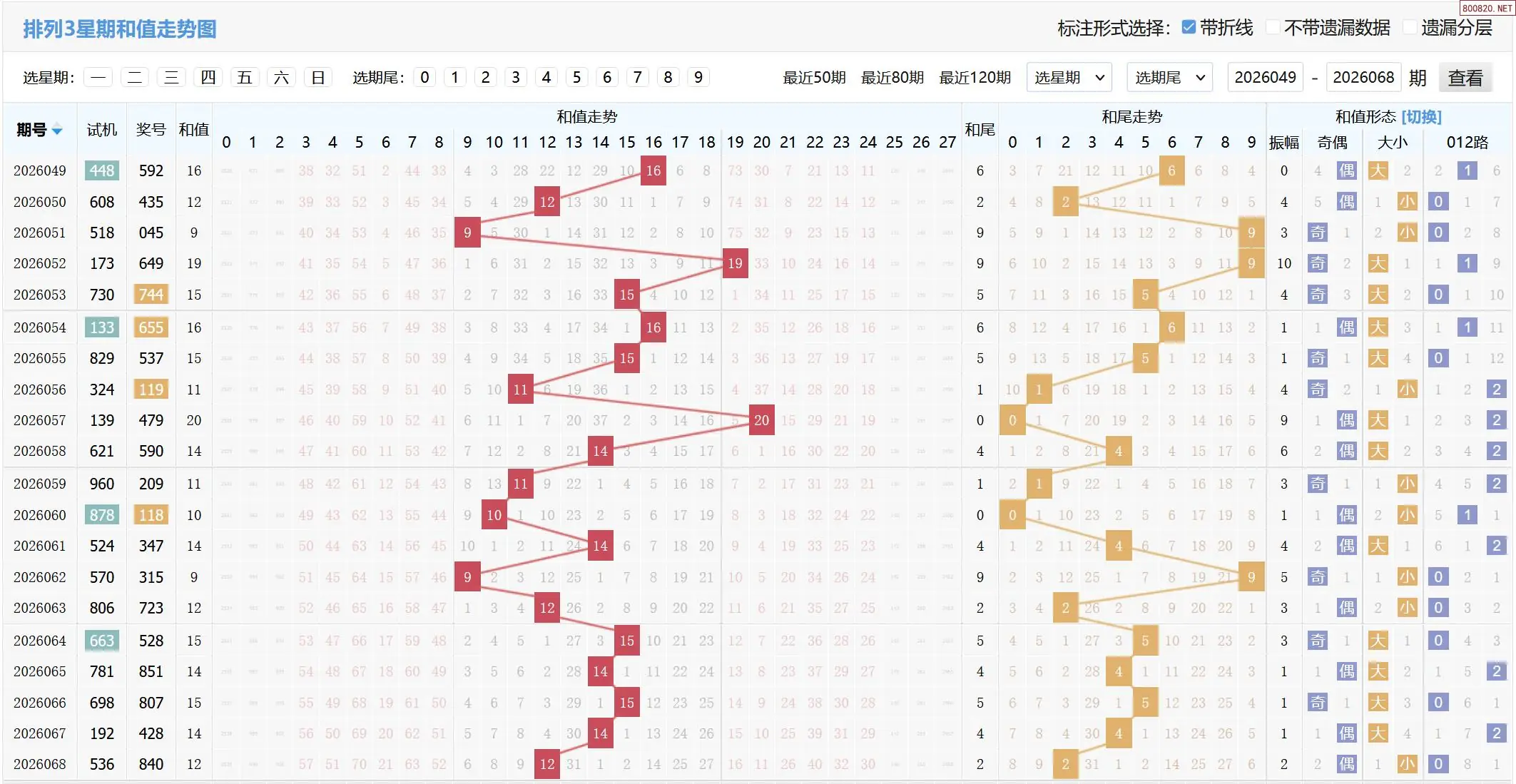 26年068期体彩P3开奖结果:840