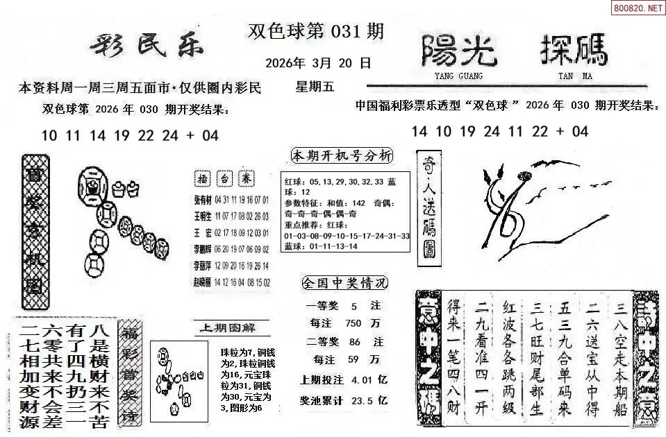 9 双色球26年031期欧阳小文字谜