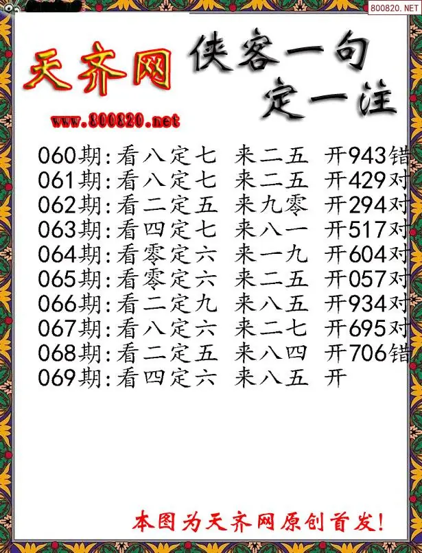 069期侠客一句3D定三码字图谜