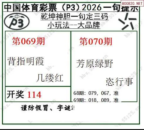 2026070期乾坤一句p3定三码图谜