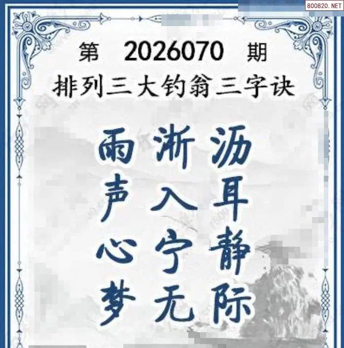 26年070期体彩p3大钓翁三字诀
