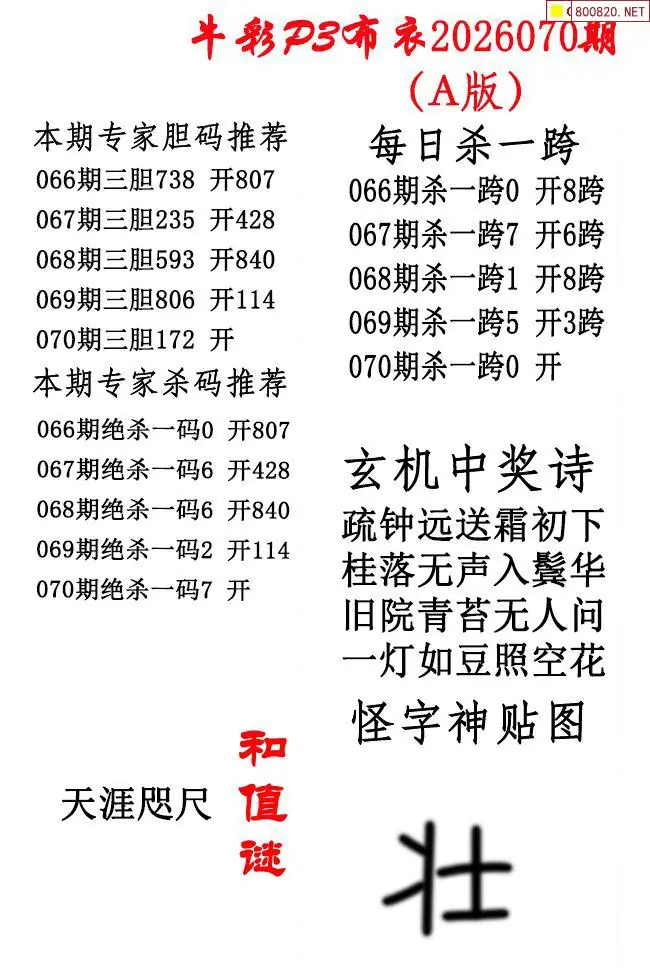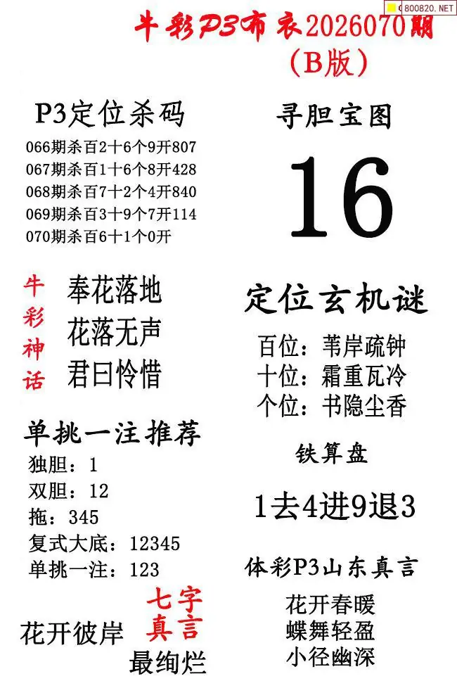 牛彩体彩P3布衣2026年070期AB版图谜(精华版)